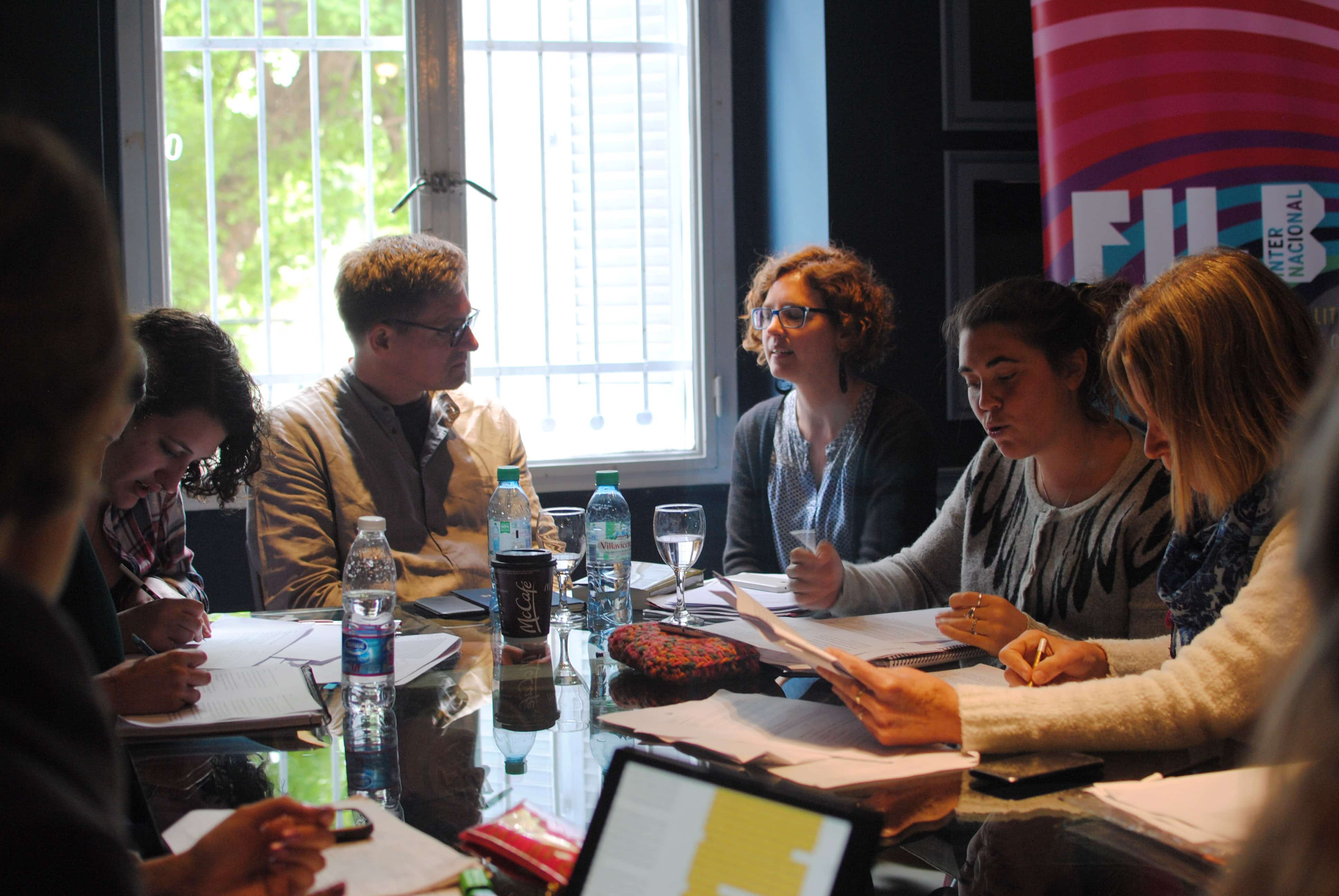 Le vendredi, à l’Abbaye de Belgrano, toujours à Buenos Aires, a eu lieu un atelier de traduction de parties du texte Ein anderes Blau de Benjamin Stein, de l’allemand vers l’espagnol, dans le cadre du FILBA. Cet atelier, appelé « Clínica de traducción literaria del alemán al español » s’adressait à un public d’étudiants en traduction littéraire de l’allemand et des traducteurs de cette langue afin de proposer une réflexion critique sur le texte.